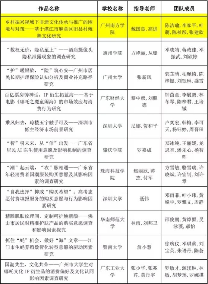 2025年广东省大学生市场调查与分析大赛结果近日揭晓,《乡村振兴视域下非遗文化传承与推广的困境与对策——基于湛江市麻章区旧县村傩舞文化研究》这一跨院系合作项目脱颖而出,荣获省赛一等奖。在高进老师的指导下,学子们以专业之眼洞察傩舞文化传承现状,用严谨逻辑剖析数据。他们反复打磨作品,最终凭借创新视角赢得评审高度认可。