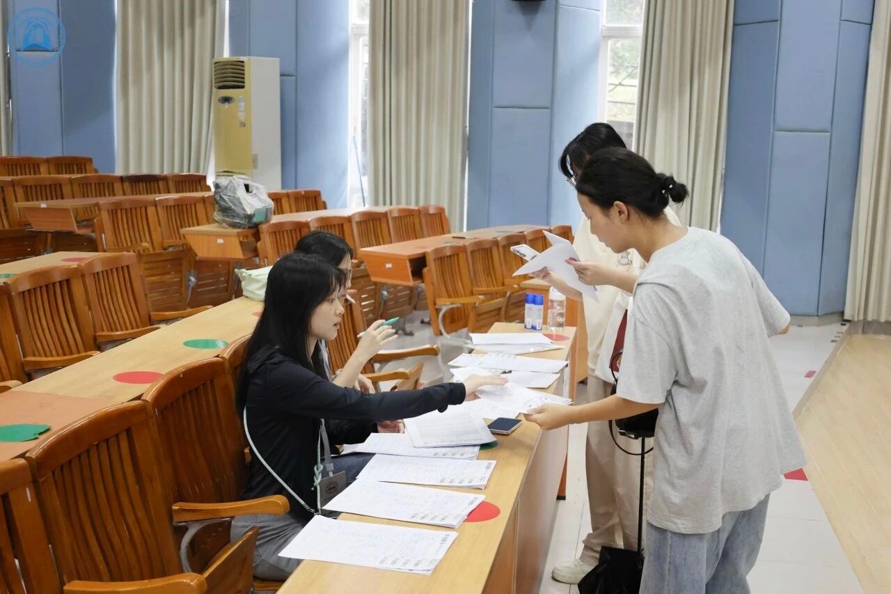 2025级朋辈辅导员们耐心收取新生入学材料并发放体检表