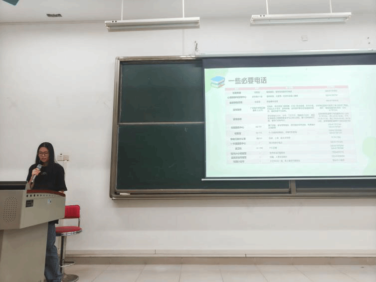 随后的“校园生活小tips”分享环节,聚焦新生日常需求,干货满满。朋辈辅导员围绕校园学习、生活服务、资源利用等核心维度,系统梳理了实用信息:从日常学习的注意事项、校园公共资源的使用方法,到生活服务的便捷渠道,均进行了清晰讲解,帮助新生快速掌握校园生活的“核心要点”。