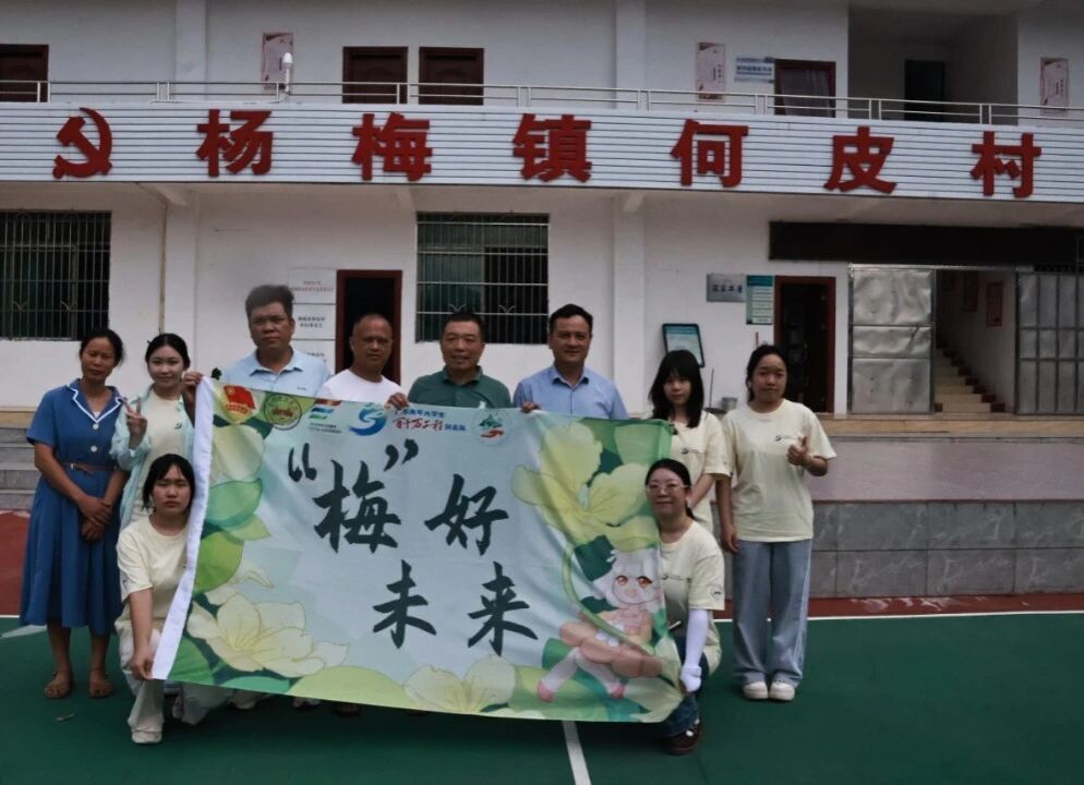 “梅”好未来队于2025年5月成立,团队指导老师是团委书记陈思思老师、伟德bv国际体育新闻与传播系吕霞飞老师、商学院市场营销系邱斯玮老师,由队长阮毅莹带领,团队成员分别来自伟德bv国际体育、商学院、设计学院、会计学院、电气与计算机工程学院、外国语学院6个不同学院,并且分为报告组、宣传组、调研组三个部门。本团队充分利用各自的专业技能,共同推进乡村振兴的实践活动。本团队依托其专业知识,通过开展助农直播、宣传片拍摄、青少年心理课堂和墙绘制作四个项目,结合自媒体平台的力量,宣传当地特色农产品,推动杨梅镇的文化旅游融合,为乡村振兴贡献力量。