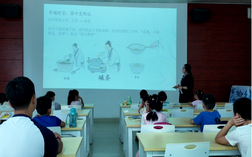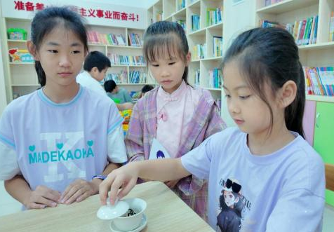 探索茶叶千年演变,溯源中国茶史,研习绿茶、红茶等六大茶类冲泡技艺,7月14日,林晓桐同学带领小朋友们体验茶道礼仪精髓,体验茶礼、茶器与禅茶一味的东方哲思。在氤氲茶香中感悟东方生活哲学,通过品鉴实践,领悟“和敬清寂”的茶道精神。