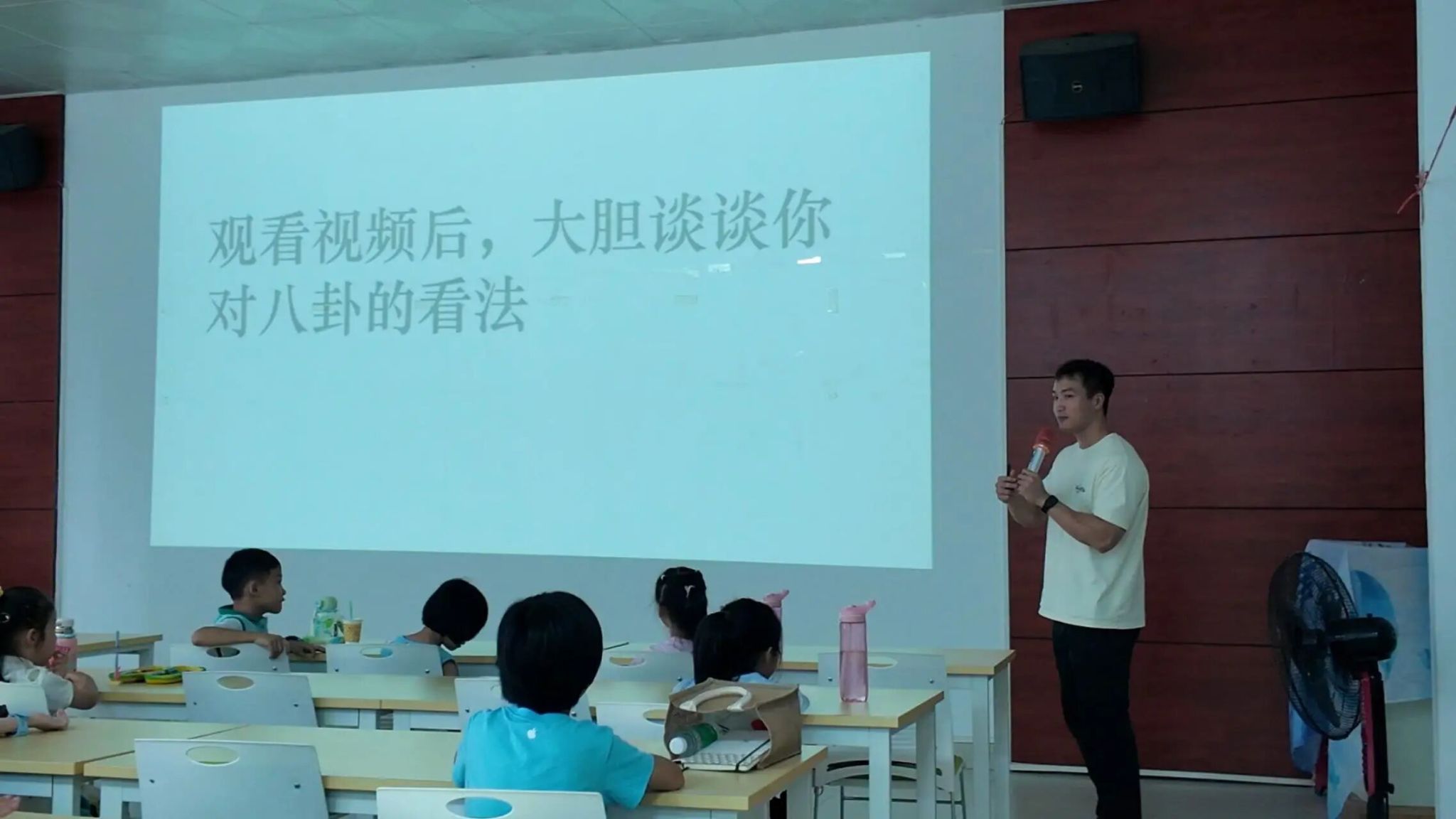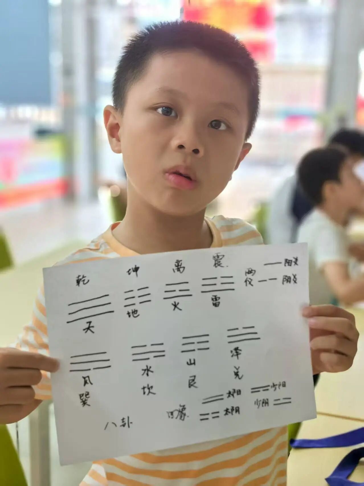 《周易》不仅是中华文明的源头智慧,更是一部动态宇宙的哲学密码。聚焦于《周易》独特的宇宙观与符号系统,陈子杰同学以古朴的太极图开场,用“黑鱼白鱼抱在一起转圈圈”的比喻,生动诠释“负阴抱阳”的动态平衡与和谐哲思。从阴阳辩证,八卦象征,到六十四卦的时空演变逻辑。陈子杰同学带领小朋友们通过卦象推演,理解“变易、简易、不易”的宇宙法则,掌握“居安思危”“与时偕行”的决策思维。