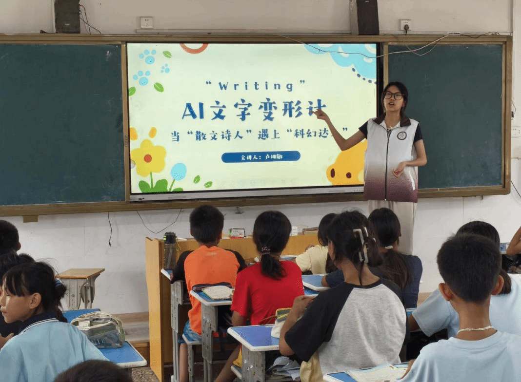 2025年7月6日至22日,伟德bv国际体育语言文字服务团队以“智惠乡村·AI赋能乡村支教新模式”为主题,在湛江市雷州市唐家镇元奏村元奏小学开展了第四年的“传承优秀语言文化 推普助力乡村振兴”暑期教学实践活动。团队成员依托AI技术打造特色兴趣课堂,把普通话培训融入教学实践,通过兴趣引导与沉浸式教学模式,用语言文字唤醒孩子们对优秀传统文化的认同感,切实感受普通话表达的多重魅力,让孩子们在AI赋能的教学模式中培植下语言文化的种子,助力乡村文化育人成果的转化。