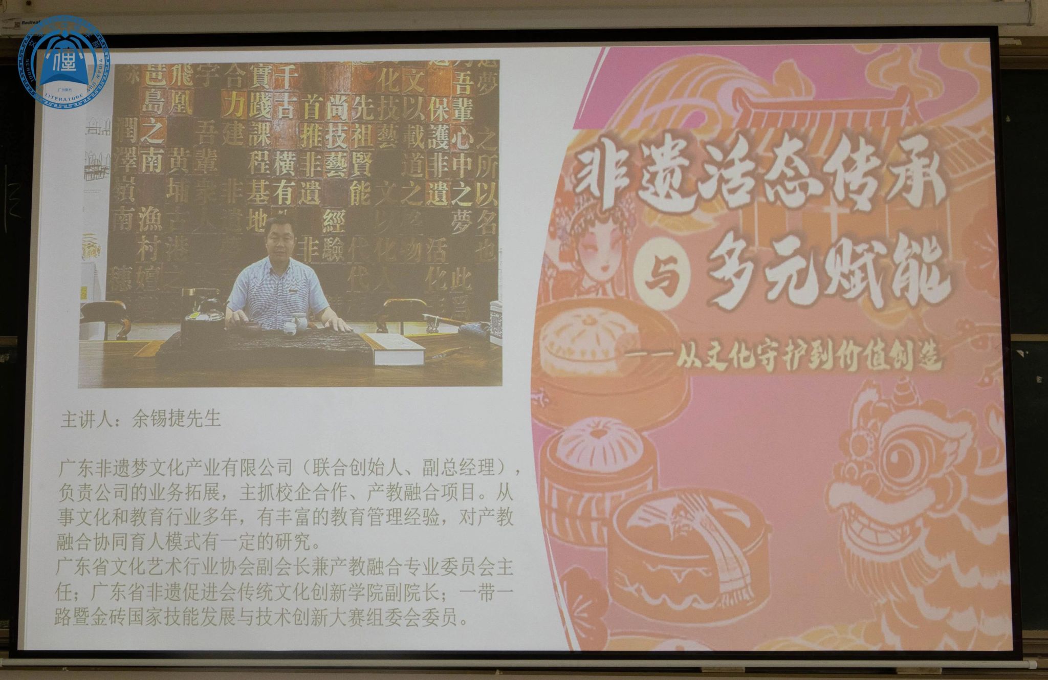 金秋十月,BV伟德官方网站校园内洋溢着浓厚的文化氛围。10月15日下午,广东省文化艺术行业协会副会长兼产教融合专员会主任、广东非遗梦文化产业有限公司副总经理余锡捷先生余锡捷先生应邀为我院师生作题为“非遗活态传承与多元赋能——从文化守护到价值创造”的专题讲座,深入阐释非遗从“保护”走向“活化”的实践路径与多元赋能策略。本讲座也是我院从化乡村文化振兴产业学院、双师课堂“岭南非遗活态传承工作坊”系列讲座之一。