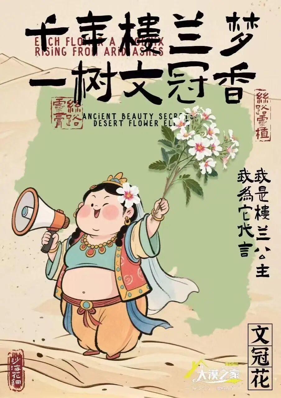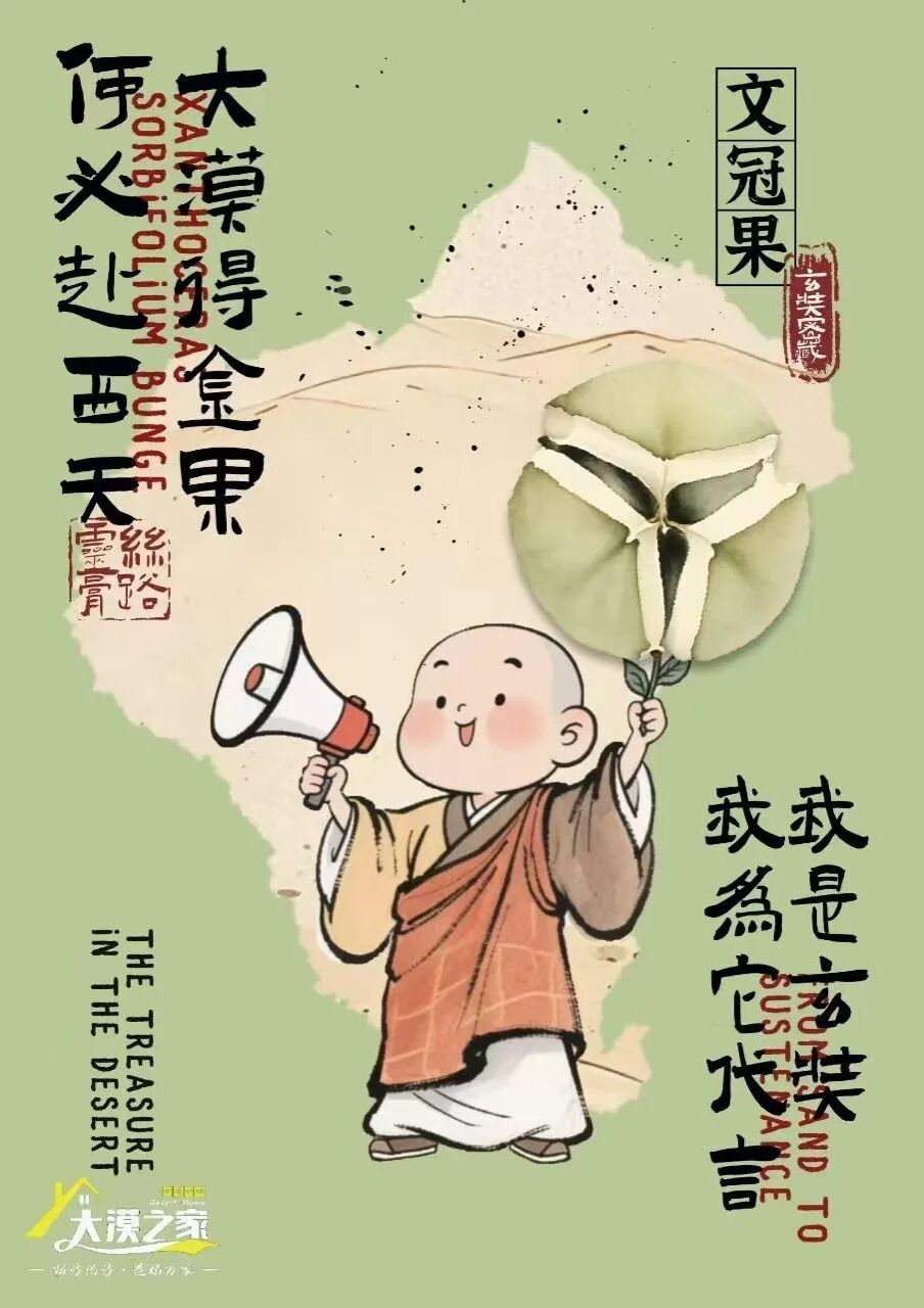 获奖作品《文冠三部曲》紧扣“防沙治沙,绿富同兴”的公益主题,创意融合历史文化与生态议题,邀请玄奘、楼兰公主、张骞三位丝路人物为防沙治沙作物“文冠果”代言,以“IP化”形式展开一场跨越古今的对话。作品在视觉上巧妙融入书法印章、地域地图等传统元素,整体风格兼具东方美学与现代设计感。