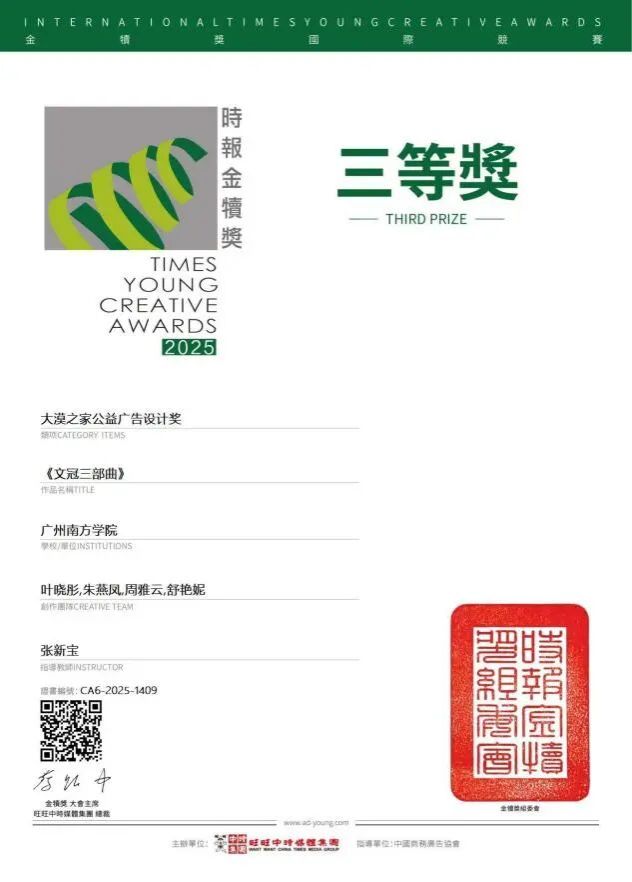 近日,第34届时报金犊奖国际竞赛获奖名单揭晓,我校伟德bv国际体育学子在竞赛中取得优异成绩。其中,《文冠三部曲》荣获国家级“大漠之家公益广告设计奖”,《微星,“5”与伦比!》获微星创作赛道国家级二等奖,充分展现了我院在创意设计与专业实践融合方面的育人成效,也是我校首次在此项赛事中获得国家级等级奖。