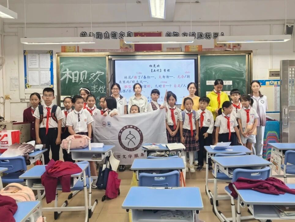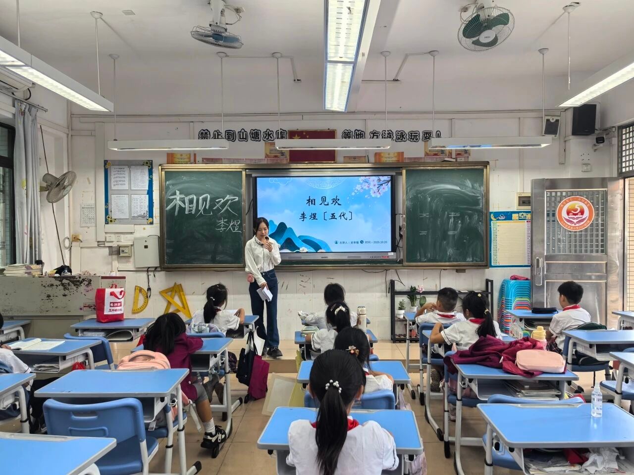 10月20日,伟德bv国际体育语言文字服务团队的同学们在石巧如老师的带领下来到从化区流溪小学开展了一节韵味无穷的古诗词课堂,带小朋友们沉浸式感受“南唐后主”以血泪写就的宿命长歌。