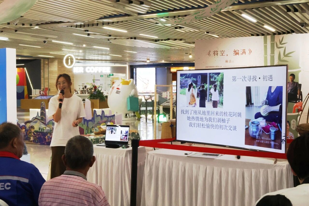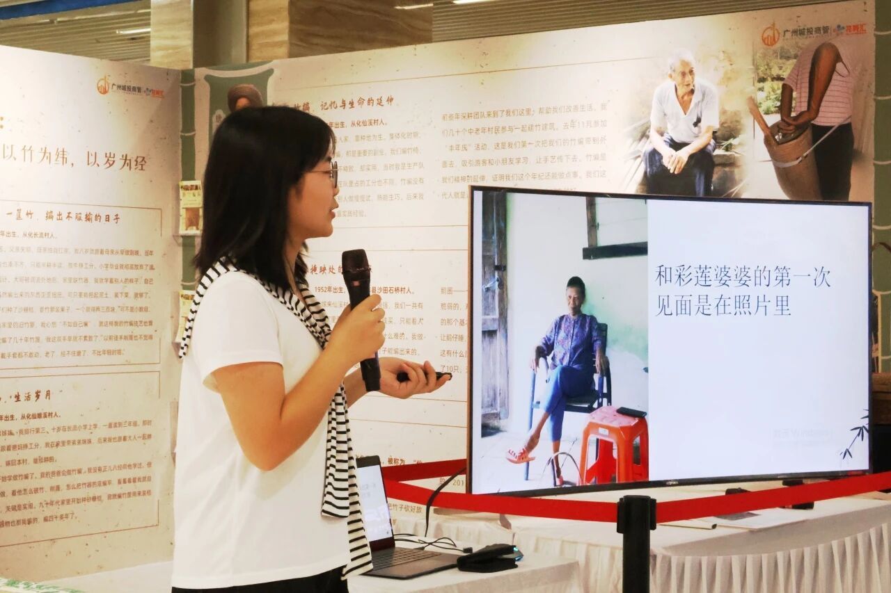 深耕工作人员曾卓:我们之前也做过活动把老人们的竹编作品带到现场去展览,或多或少也有一些经验,所以我们今天把老人家昨晚砍的竹子带到了现场,老人们都十分激动能来到展览现场当嘉宾分享故事。