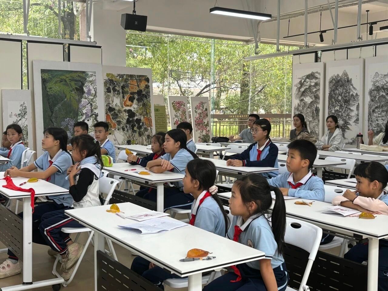 随后,小高老师带领小同学们走出课室,来到熟悉的校园中,以亲身体验去感受与触碰自然万物的痕迹。在下午和煦的微风中,小同学们站成一排,发挥自身细腻的感知能力,结合课堂所学的“五感”写作法,重新观察起平日里再熟悉不过的校园。楼旁的木棉树,远远传来的鸟鸣、空气中氤氲着的土腥味,都成为了小同学们描绘与讲述的对象。