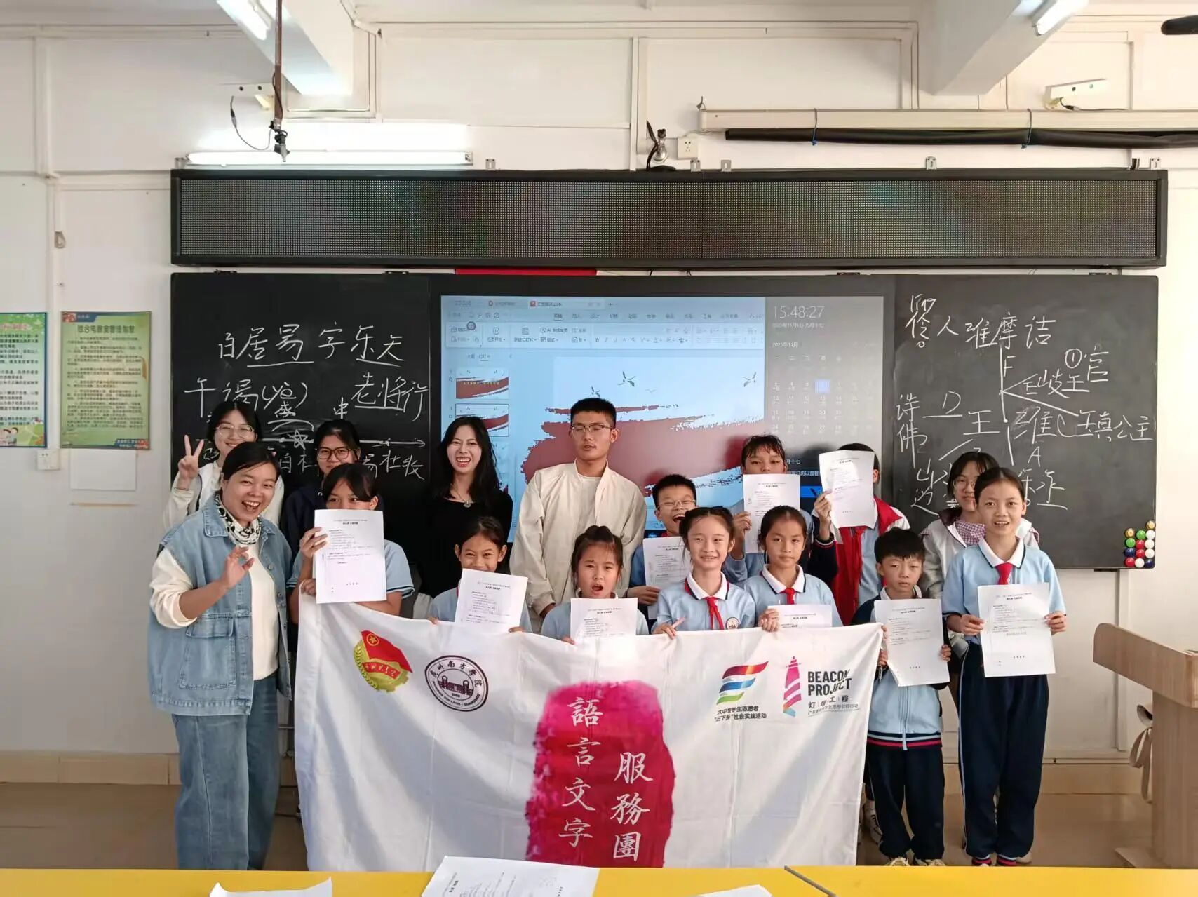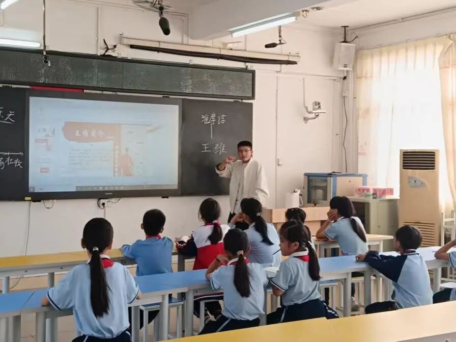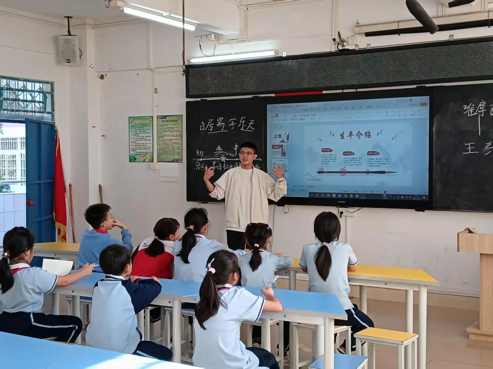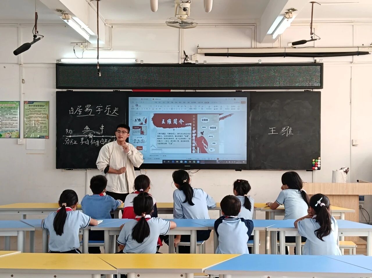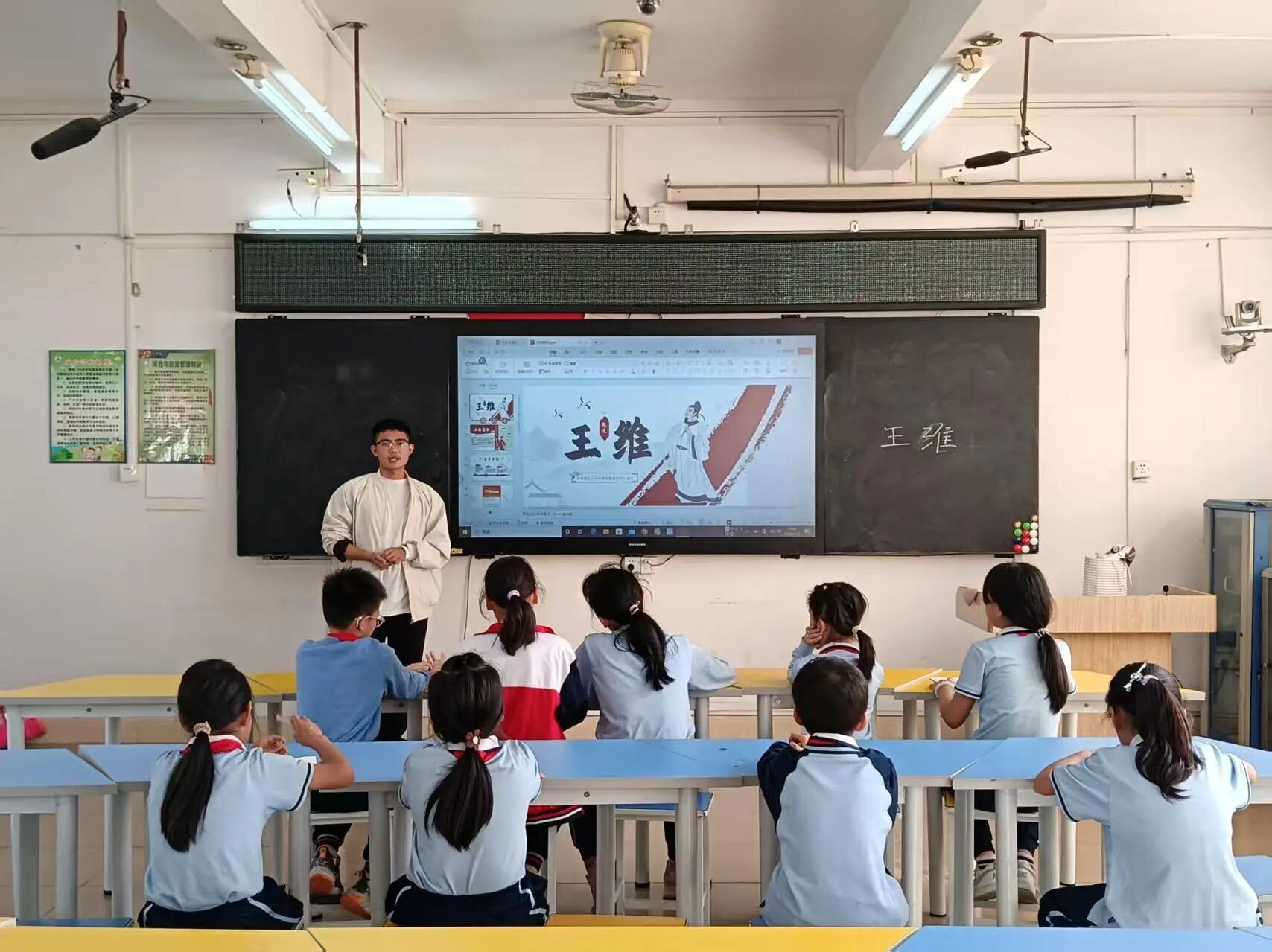 迎着晚秋的暖阳,乘着孟冬的凉风。2025年11月6日下午,伟德bv国际体育语言文字服务团队在杜欣莉老师的带领指导下,来到了广州市从化区善施学校。本次古诗词课堂的小老师是来自2024级汉语言文学专业的陶俊杰,小陶老师以诗歌为介,引领孩子们从现世穿越到盛世大唐,体验诗佛王维大起大落的曲折人生,感悟王维寄情于诗歌中的万千思绪。