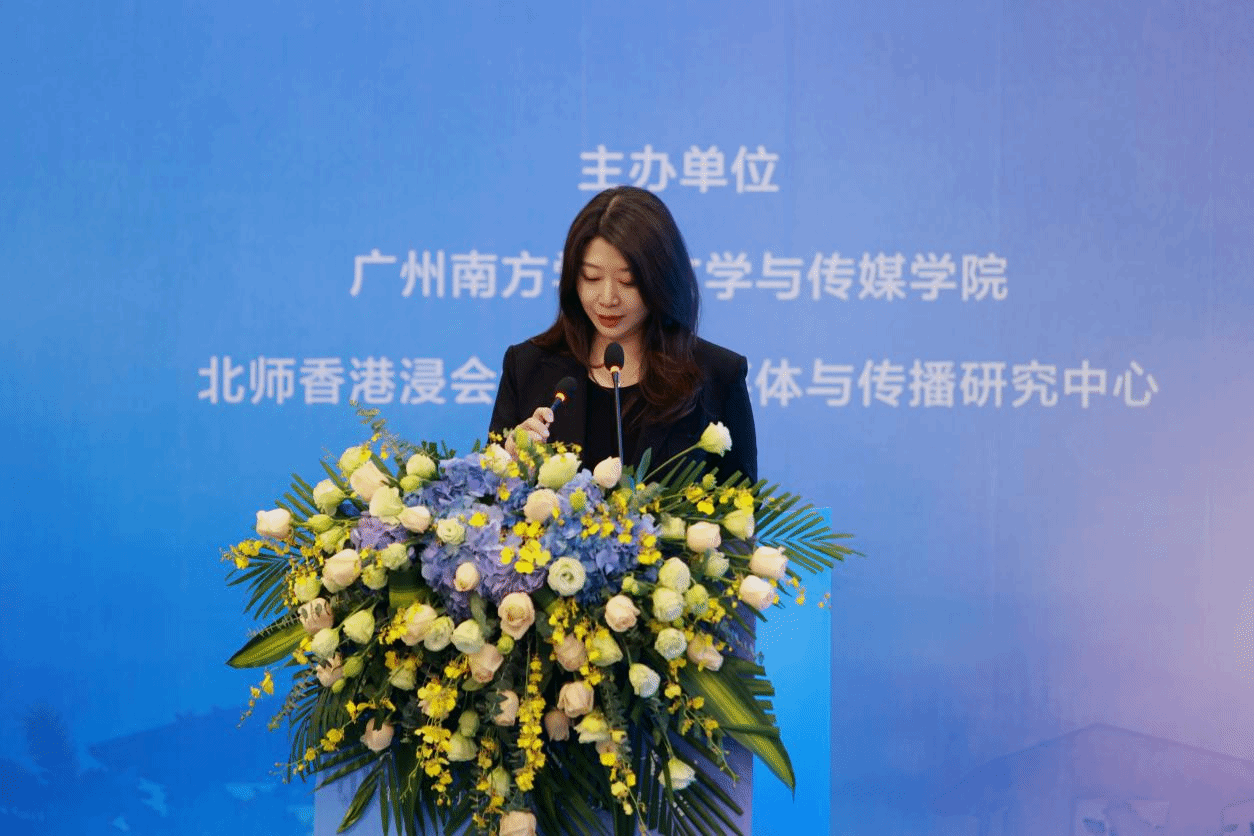 作为论坛主持人,区健妍女士以“颠覆、再造、重组”三个关键词为切入点,提出一系列“AI时代应该培养什么样的新闻传播人才”的追问,与学界业界专家们一起,重点探讨了AI技术爆发对传统传播学人才培养带来的冲击。