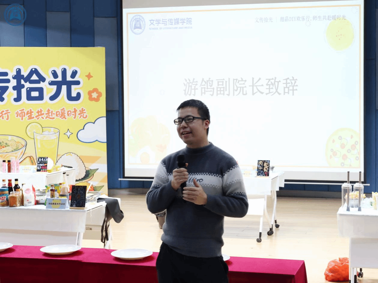 游鸽副教授为活动致辞,他表示,劳动实践是培育匠心的重要途径,甜品制作看似简单,却藏着对细节的打磨与对美好的创造。希望同学们能在亲手制作的过程中感受劳动的价值,在师生协作中体会分享的快乐,让甜香不仅留在舌尖,更能在心底种下匠心与合作的种子,让师生共育的劳动育人理念落地生根。