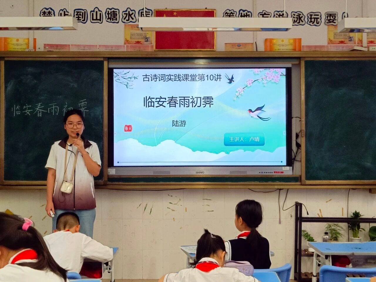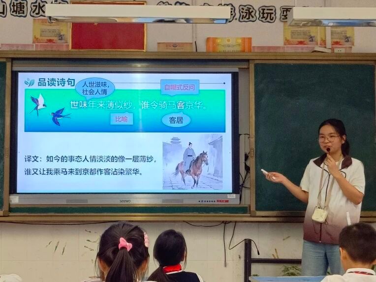 小卢老师的课堂以趣味互动贯穿始终,从身份卡填空到“闲愁盲盒”游戏,用图片、视频等鲜活形式拆解了陆游的诗词与人生,让原本抽象的“无奈惆怅”变得可感可触。孩子们从初入课堂的好奇踊跃,到朗读时的情绪沉潜——眉头轻蹙的低落、放轻的语调、悄然的叹息,都藏着他们对陆游的共情。这堂古诗词课,不仅让孩子们读懂了陆游的诗,更让他们走进了诗人的心怀,让略显遥远的古典情怀,在互动与共情里变得鲜活温热。