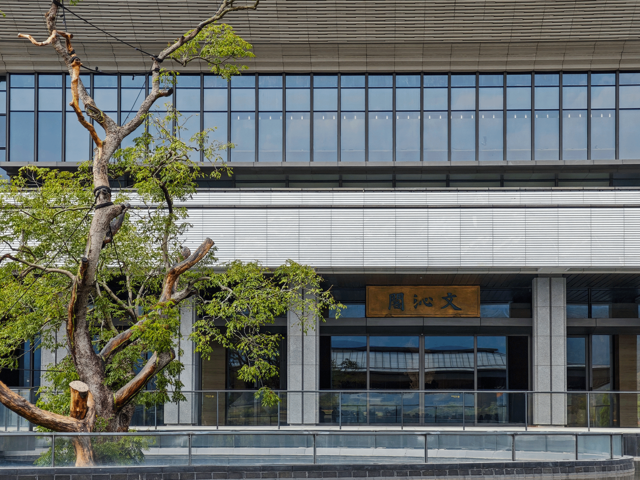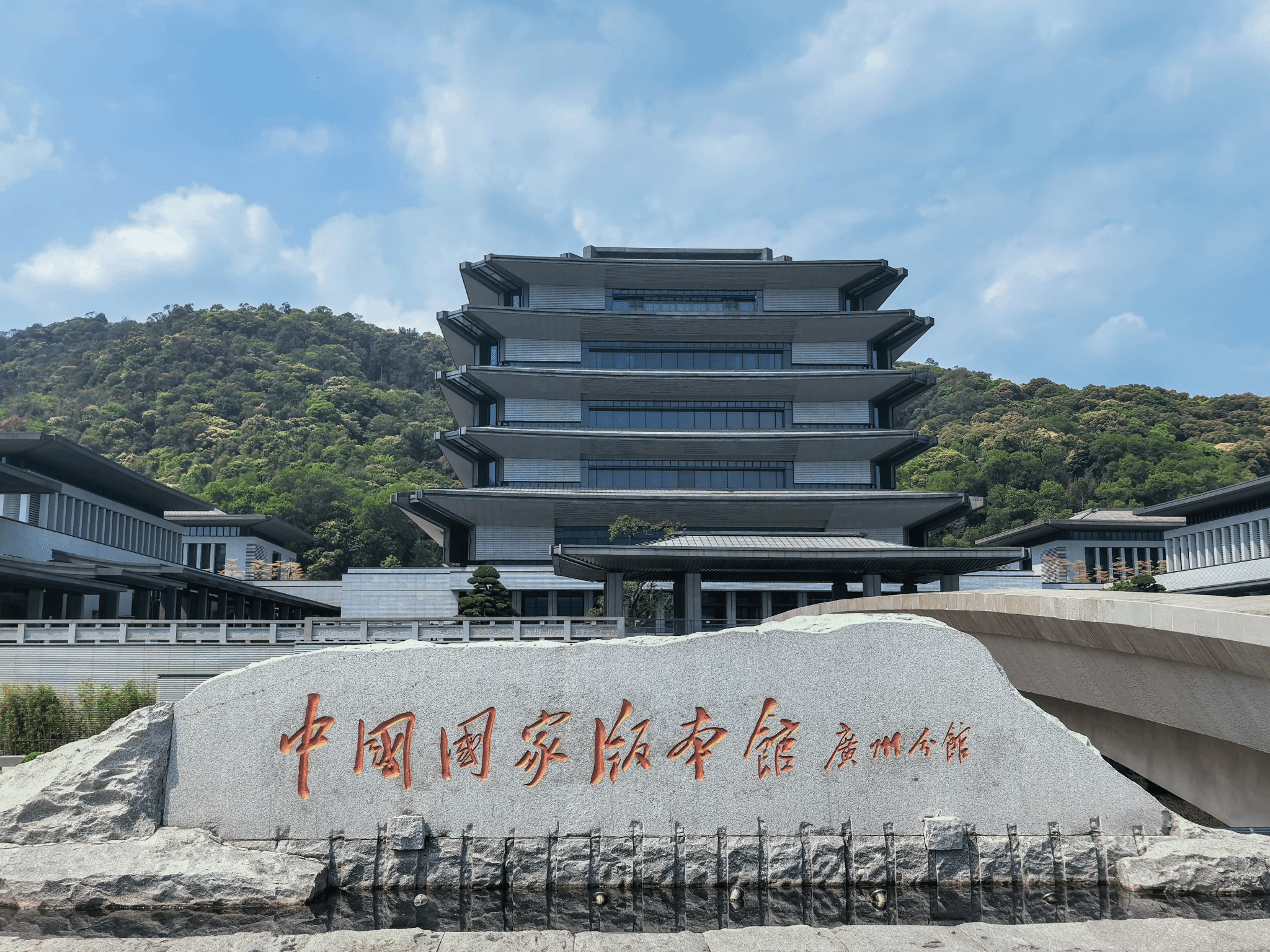 坐落于广州市从化区凤凰山麓、流溪河畔的中国国家版本馆广州分馆,宛如一座静谧而庄严的文化灯塔。师生们抵达后,立刻被其独特的建筑美学所吸引。该馆由何镜堂院士团队领衔设计,以“中华典藏、岭南山水、时代新韵、文明灯塔”为总体理念,巧妙融合了中华传统制式与岭南特色。在讲解员的介绍下,大家了解到,馆区设计蕴含着“文房四宝”的深远意境——古树为“笔”、碧水为“墨”、巨石为“砚”、中轴为“纸”,人文与自然在此达到了高度的和谐统一。