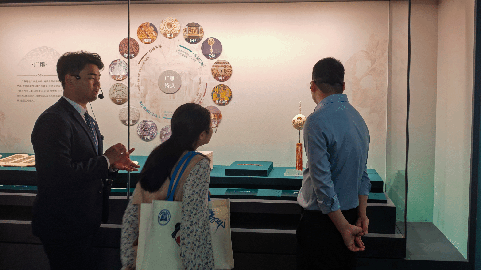 为深入学习贯彻习近平文化思想,深刻领会“两个结合”的重大意义,增强师生对中华优秀传统文化的认同感与自豪感,3月25日,伟德bv国际体育团委学生会组织师生前往中国国家版本馆广州分馆(文沁阁)开展参观学习活动。学院副院长游鸽副教授,中国语言文学系温馨老师、陆王光华老师,网络与新媒体系黄卉卉副教授、张新宝老师、王帆老师,行政办公室主任潘静老师,团委书记苗秋实老师,以及辅导员陈节老师、吴秋璇老师等教师代表和学生代表共同参与了此次活动。