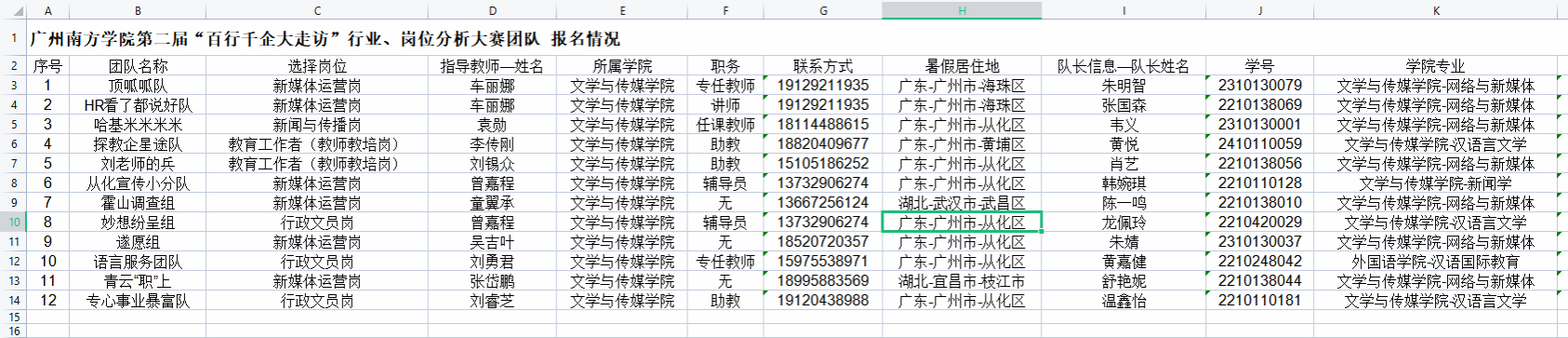 车丽娜老师、袁勋老师、李传刚老师、刘锡众老师、童翼承老师、曾嘉程老师、吴吉叶老师、刘勇君老师、张岱鹏老师、刘睿芝老师