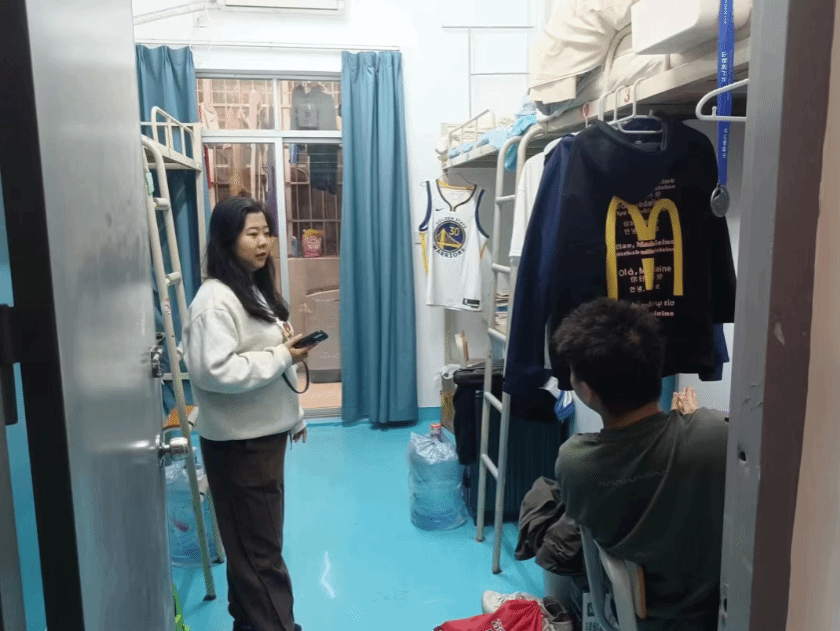 辅导员们细致询问同学们的学习进度、日常生活、宿舍相处等情况,认真倾听大家在学习生活中遇到的困难、困惑与实际诉求,对同学们提出的疑问耐心细致解答,对需要协调解决的问题逐一做好记录、及时跟进反馈。在亲切温和的交谈中,辅导员们用真诚的倾听、细致的叮嘱和务实的行动,传递着学院对每一位学生的关心与呵护,让远离家乡的学子们在校园里也能感受到浓浓的温暖与安心,真正做到了师者暖心、学子安心,进一步拉近了师生距离,让温情与关爱充盈在每一间宿舍。
