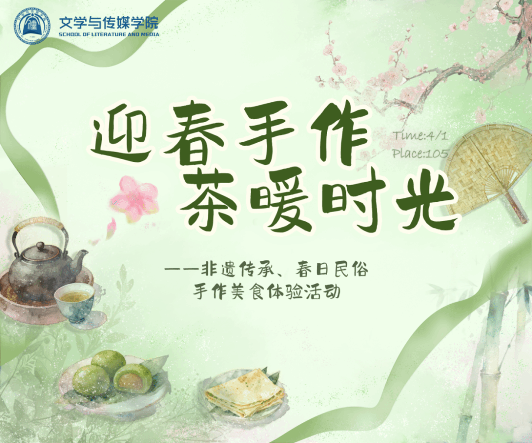 向春而行,生生不息。为春日校园增添仪式感,莫过于从美食与游戏开始。4月1日下午,我院在1教105教室开展“迎春手作,茶暖时光”非遗民俗体验活动。本次活动旨在弘扬中华优秀传统文化,拉近同学们之间的距离,让大家在亲手体验中感受民俗乐趣。