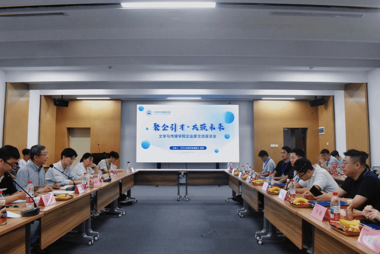 当天下午,企业家座谈会在中和楼第一会议室召开,特别邀请学校夏亮辉副校长莅临指导,旨在搭建校企交流平台,深化产教融合,促进毕业生高质量就业。来自文旅、新媒体、影视、管理咨询等行业的企业代表围绕企业用人偏好、学生能力短板、职业规划建议及校企合作方向等议题展开交流。