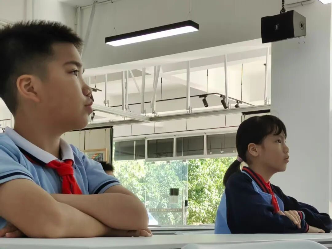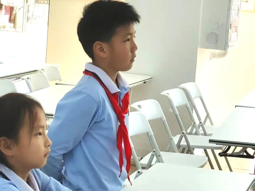 会读诗歌,也要会析诗意。在观看视频并朗读诗词后,小老师向同学们一一介绍“西楼”“月如钩”“梧桐”等意象的含义,讲解李煜“千古词帝”的人生际遇,用充满画面感的语言引导孩子们想象:“无言独上西楼,天边挂着一弯残月,庭院里的梧桐叶在秋风中沙沙作响……”
