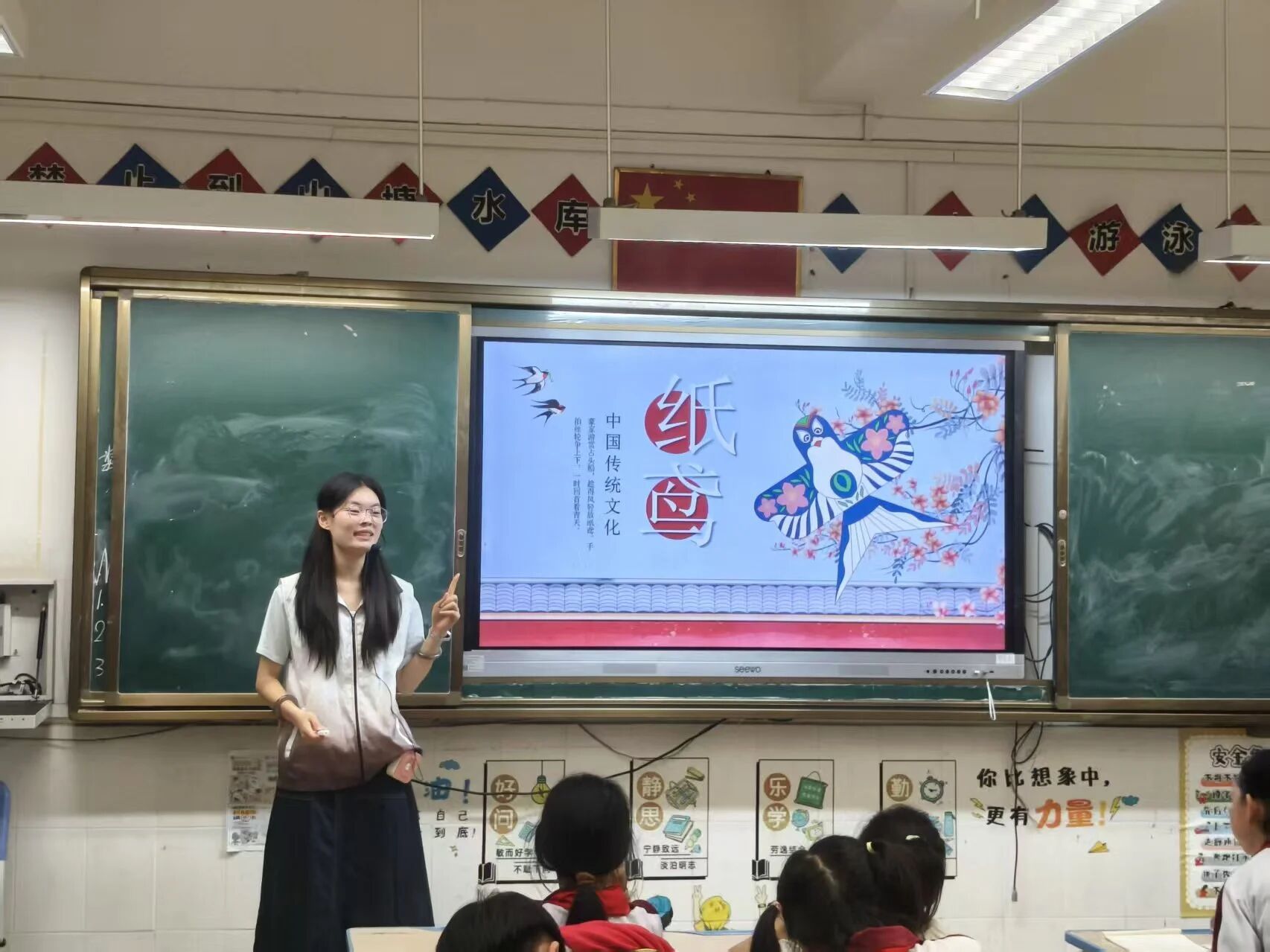 春风送暖,童趣盎然。2026年3月31日下午,伟德bv国际体育指导老师郭泳琳带领语言文字服务队,来到从化区流溪小学,开展一堂生动有趣的非遗纸鸢课程。本次课堂,由2024汉语言文学专业的张颖同学主讲,带领同学们沉浸式走进纸鸢的文化世界。
