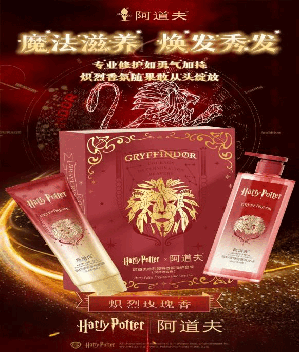 本次创作以“霍格沃茨四院特质”为核心,将阿道夫香氛洗护的“滋养力”转化为对应学院“魔法属性”,让产品既是洗护工具,也是承载学院精神的“发丝魔法信物”,实现外在秀发焕新与内在精神共鸣的双重体验。