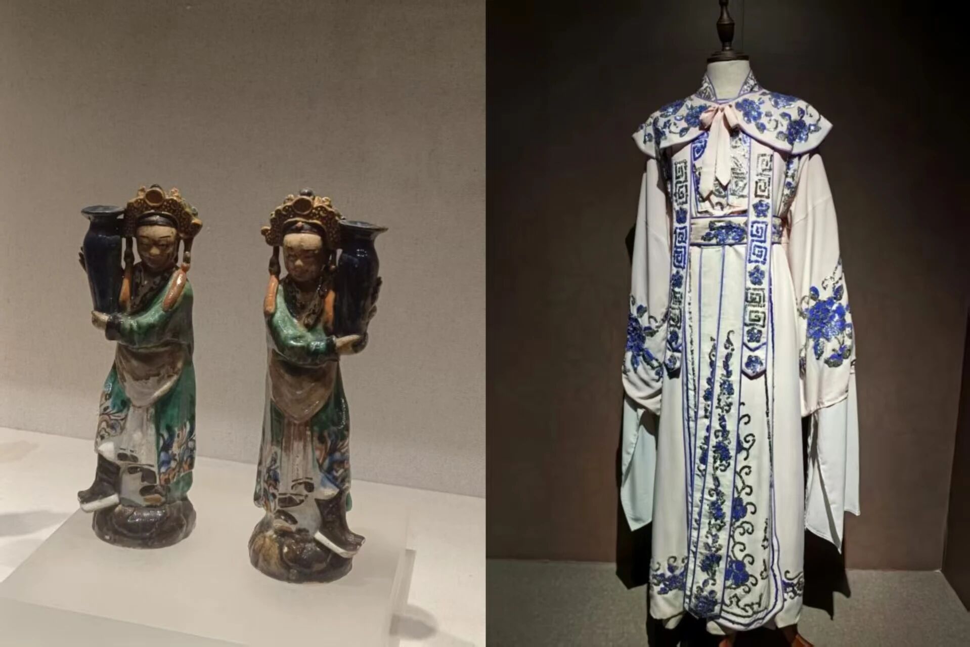 再往里走,展示柜里陈列着一件件华丽精致的戏服和头饰,它们或绣有栩栩如生的花鸟鱼虫,或镶嵌着璀璨夺目的珠玉宝石,每一处细节都彰显着粤剧艺术的辉煌。它们不仅仅是艺术的结晶,更是历史的见证者,默默诉说着粤剧的兴衰荣辱。师生们在讲解员的讲解下,见证了粤剧从诞生到兴盛的全过程。大家不时发出惊叹,驻足观赏戏服和头饰,用心欣赏着“历史的模样”。