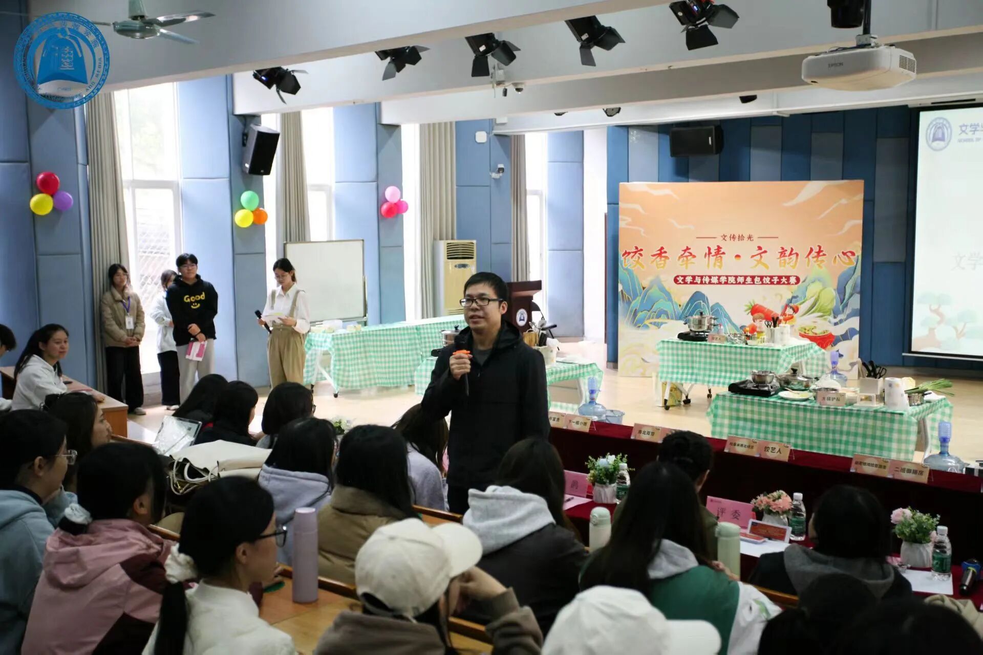 暖场环节结束后,游鸽副教授对此次活动发表致辞,他向来到现场的所有师生致以最诚挚的问候。他强调,我院始终秉持“活力文传,师生共荣”的理念,希望老师们和同学们在动手协作中,包出乐趣,包出情谊,更“包”出我们学院大家庭的温暖与和谐!”