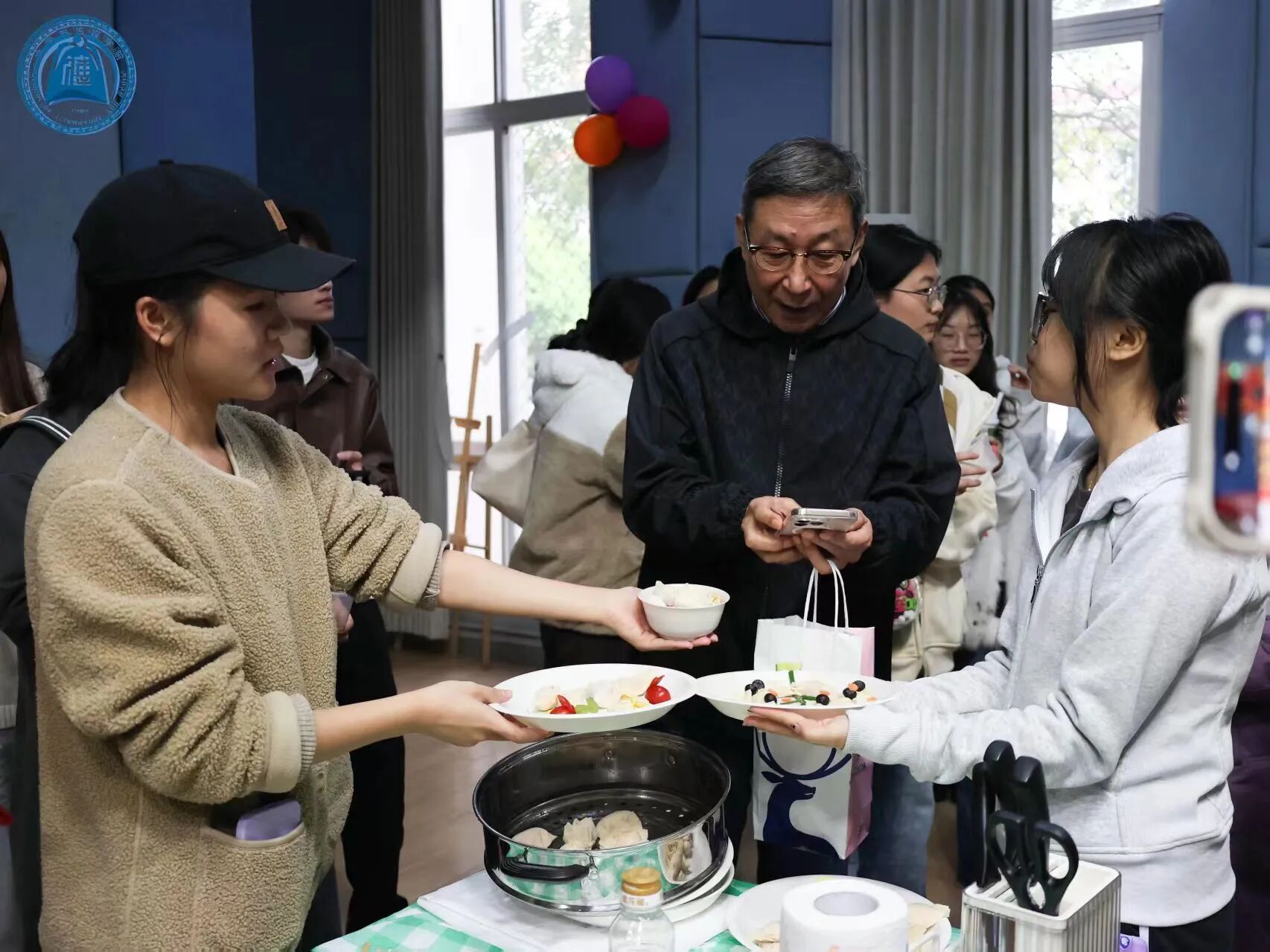 颁奖结束后,各队包制的饺子与家乡美食纷纷上桌,香气四溢,在场师生围坐在一起共品美味。此时,孙立教授一边品味饺子一边与同学们交流包饺子的心得技巧,耐心倾听各队伍包饺子时发生的趣事。他对此次传承传统饮食文化、凝聚师生情谊的大赛给予充分肯定,称赞赛事既有趣味性又有文化内涵,切实拉近了师生距离。孙立教授的暖心互动让现场暖意愈发浓厚,饺子的鲜香与师生的温情交织相融,定格成冬日校园里最温馨的画面。
