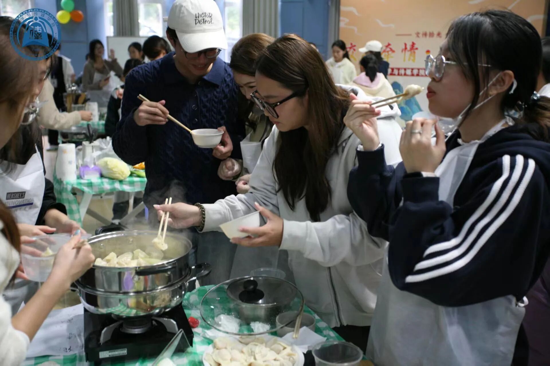 大赛的最后一个环节“家乡美食分享”为赛事添上了暖心一笔。各队在完成比赛作品后,将各自队伍的饺子下锅烹煮。一时间,各种风味汇聚一堂,有的鲜香,有的麻辣,有的清甜。同时,各队伍也分别带来家乡的经典菜肴,从南到北的风味碰撞,在场的师生一边聆听菜品背后的家乡故事,一边感受不同地域饮食文化的多元魅力,进一步深化对中华传统饮食文化的理解和认同。